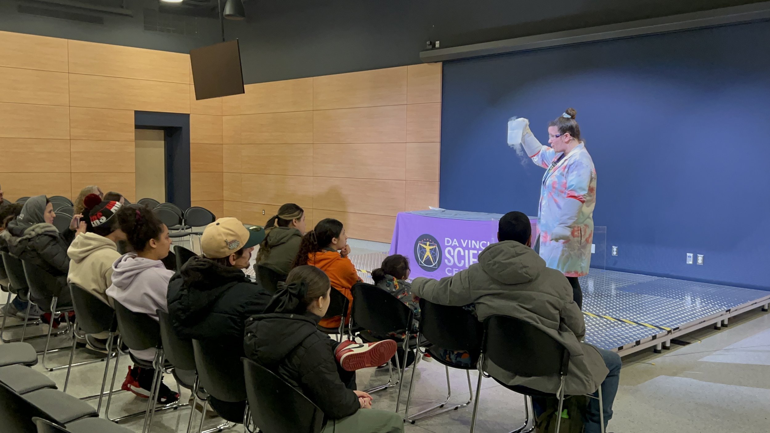 PA Distance families enjoy the chilly demonstration at the DaVinci Science Center