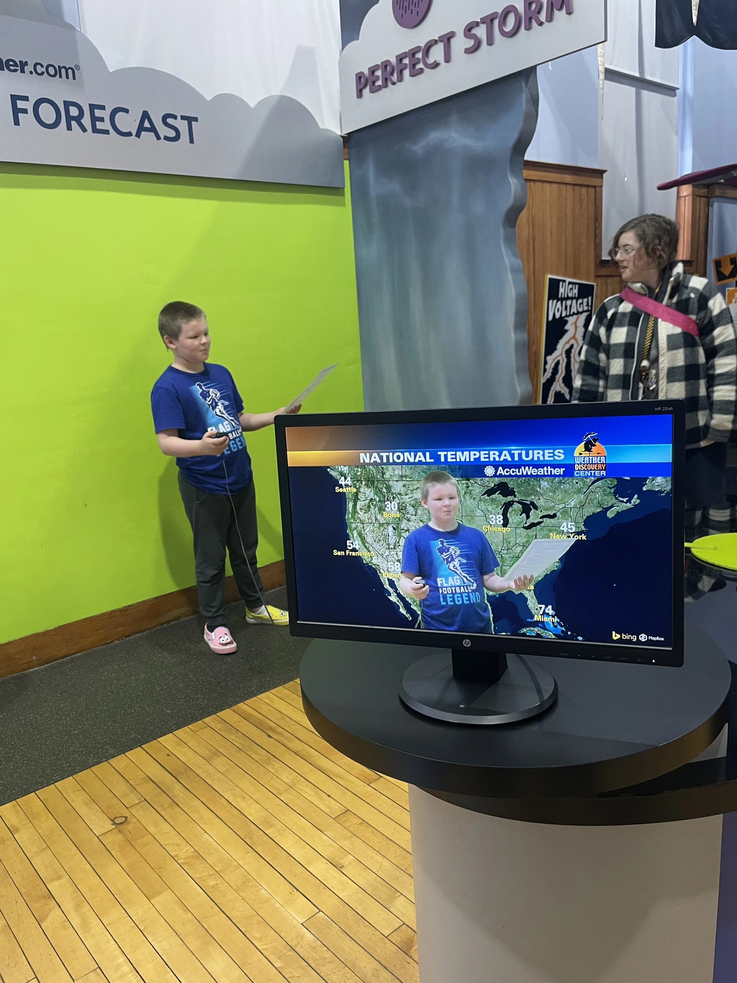 One of our students tries out a career as a meteorologist at the Weather Discovery Center